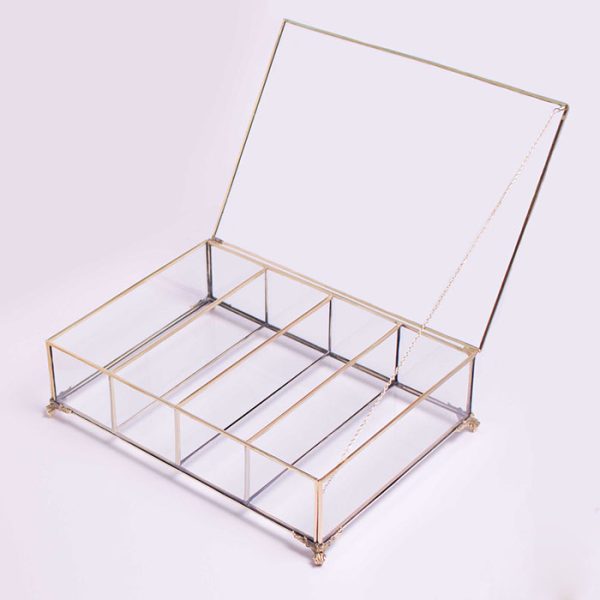 جعبه تی بگ شیشه ای بزرگ 4 خانه مدل پایه دار