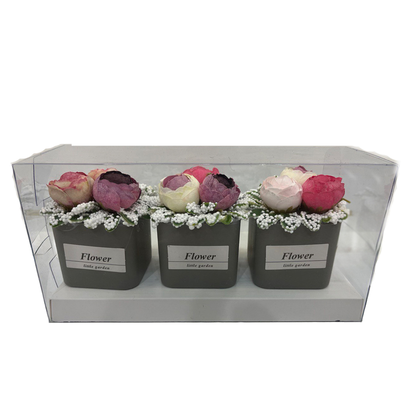 جعبه 3تایی گلدان و گل مصنوعی مدل نسترن