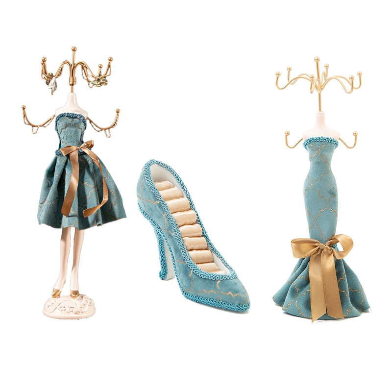 ست 3تایی جا جواهری مانکن لباس مجلسی از فروشگاه گل1001، انتخابی ایدهآل برای نگهداری و نمایش طلا و جواهرات شماست. این مجموعه شامل: