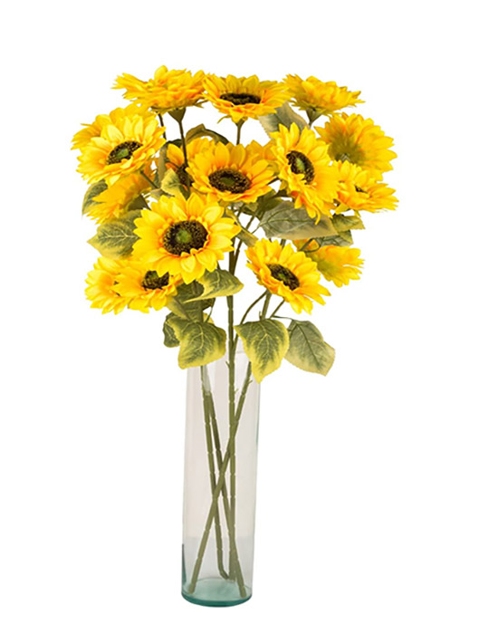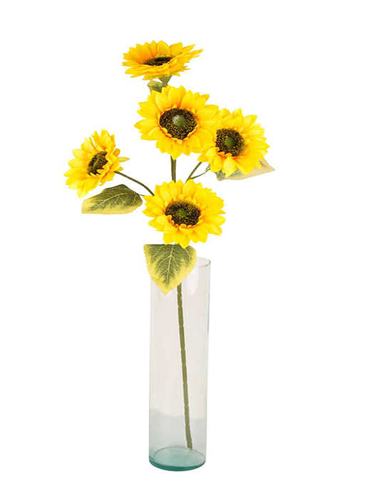 یکی از محصولات زیبا و شاداب ما، شاخه گل آفتابگردان مصنوعی است. این شاخه شامل 5 عدد گل زرد با قطر 16 سانتیمتر و ارتفاع 100 سانتیمتر است. این گل از جنس پارچه با کیفیت بالا ساخته شده و بسیار شبیه به گل های طبیعی هستند. تخمک گل ها غیر قابل شستشو هستند و باید از تماس با آب خودداری کنید. شاخه گل آفتابگردان مصنوعی ما را میتوانید برای تزئین خانه، دفتر کار، میز مهمانی و یا هدیه دادن به عزیزان خود انتخاب کنید. این شاخه گل با رنگ زرد خود، نور و انرژی را به فضای شما میآورد.