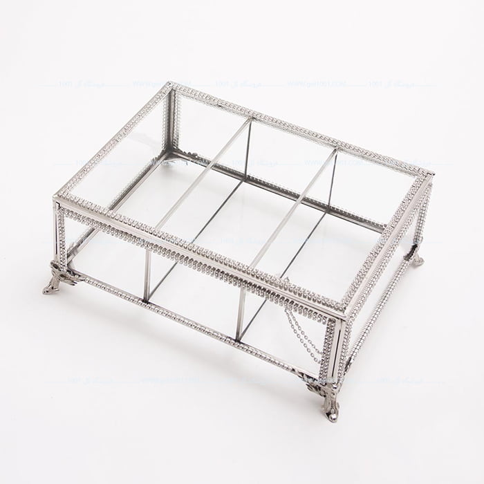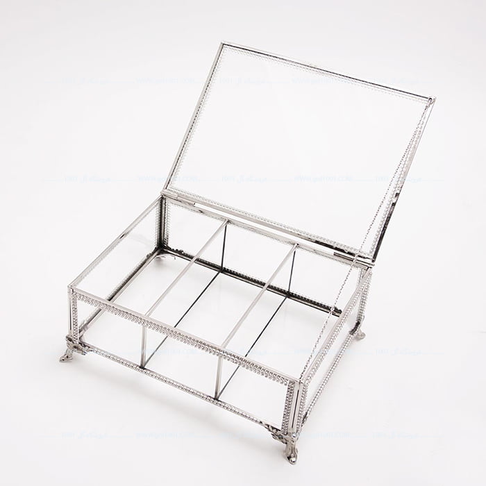 جعبه چای شیشه ای کوچک 3خانه مدل نگین دار