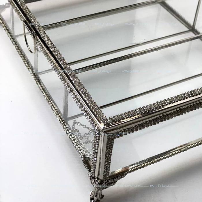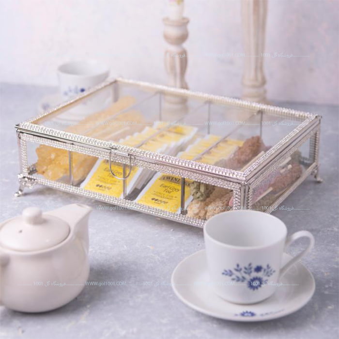 جعبه تی بگ شیشه ای بزرگ 4 خانه مدل نگین دار