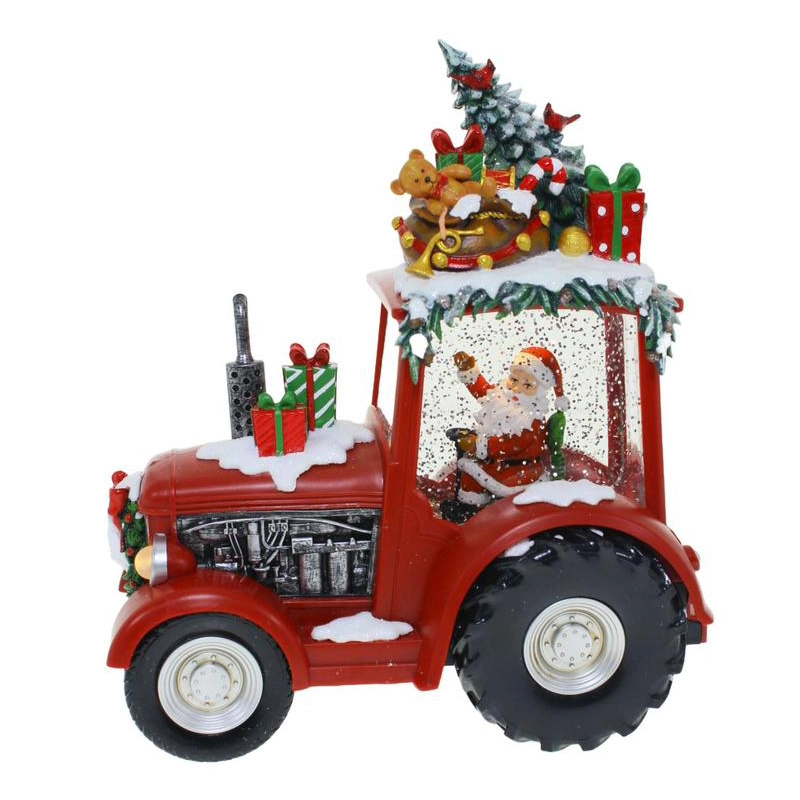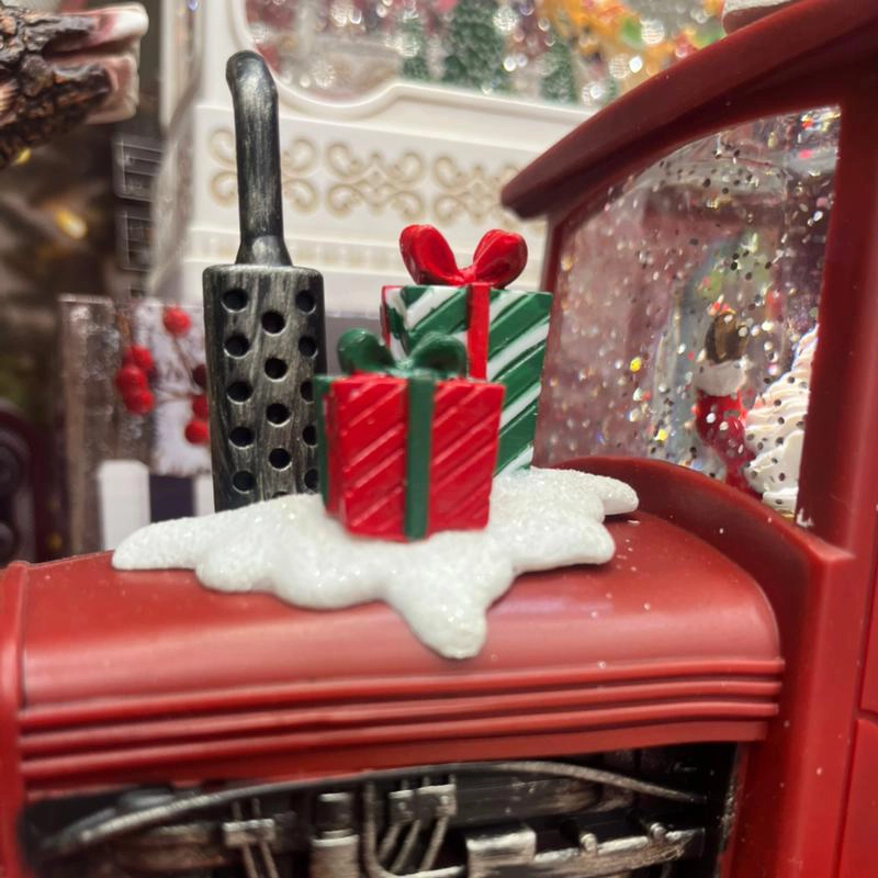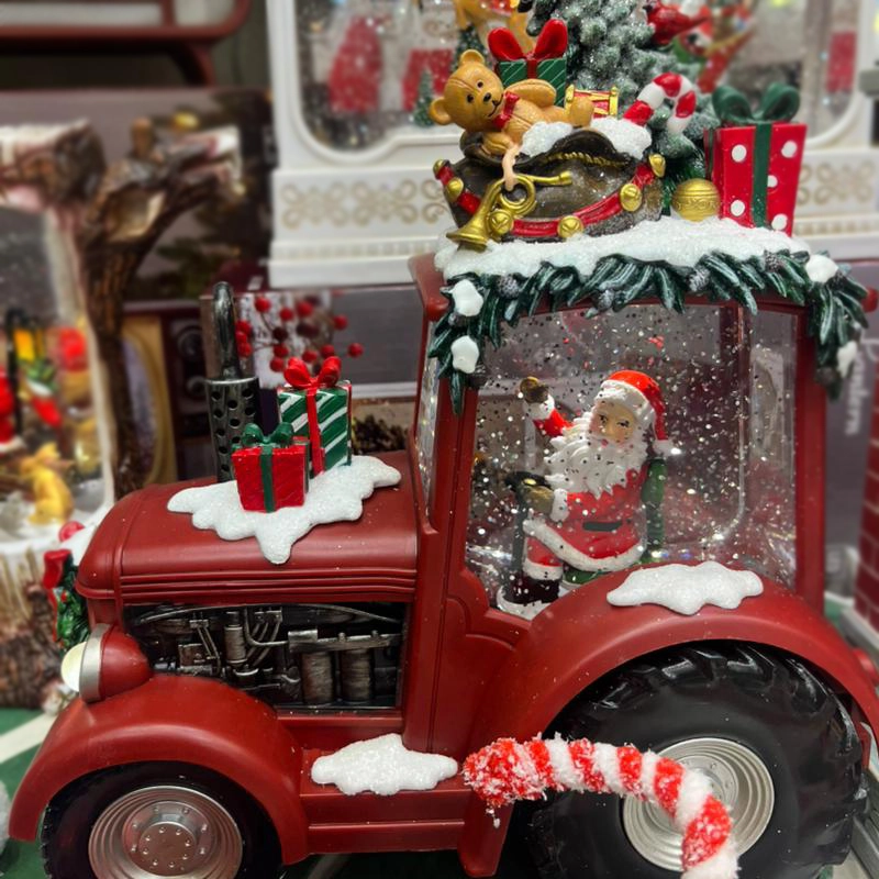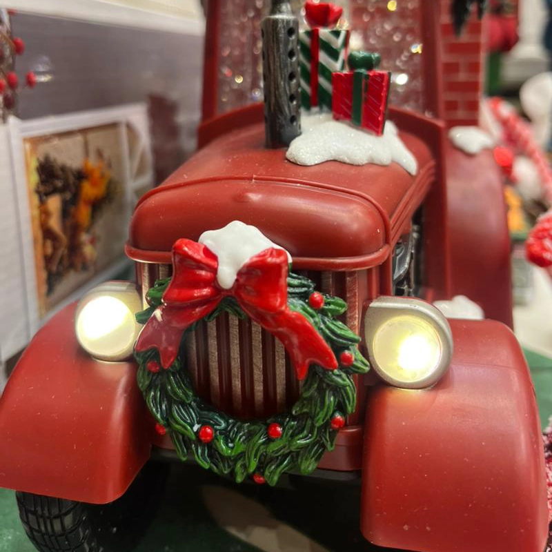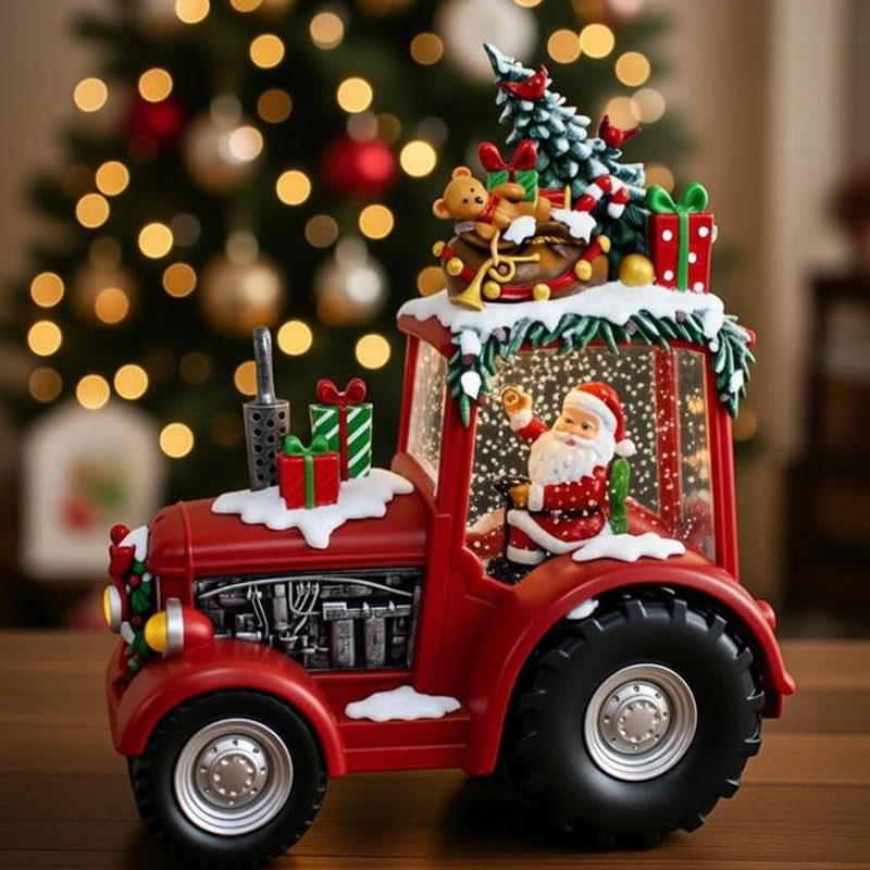 بدنه تراکتور با برف مصنوعی تزئین شده و چراغ جلو با نور LED محیط را روشن میکند و جلوهای جادویی میسازد. این محصول اکلیل درخشان را پمپاژ میکند و همزمان 8 موزیک نوستالژیک کریسمسی پخش میکند تا فضایی پر از حس خوب و خاطرهانگیز ایجاد شود.